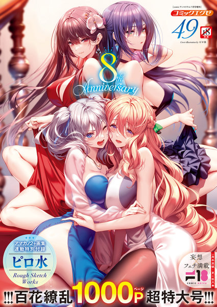 淫欲と高貴の意欲誌『COMIC E×E49』は百花繚乱1000Pの超特大8周年記念号!