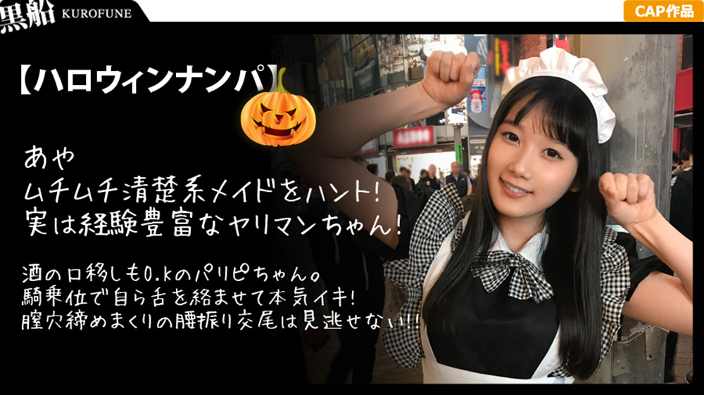 ★魔法の言葉「Happy Halloween!」★渋谷の若者が乱れる季節がまた今年もやってきました!ポリス衣装で巡回しハロウィンに浮かれるコスプレ女子を緊急逮○!今回はアパレルで働く先輩後輩の二人組をゲッツ!黒髪メイド姿のあやちゃん(23歳)⇒清楚系の黒髪ぱっつん女子なのに経験人数は50人と超ヤリマン!先輩とのお酒の口移しも全然OKなパリピ全快の清楚系ビッチ!⇒泥○した勢いで風呂場に連れ込み戦闘開始!立ちバックで○され絶頂お漏らしで大量噴射する変態ビッチの本領発揮!⇒騎乗位で自ら舌を絡ませて本気イキ!膣穴締めまくりの腰振り交尾は見逃せない!