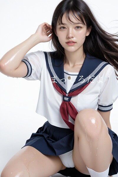 【純白の調和、隠しきれない清楚な衝動。】すべてが光に満ちた「白い背景」の中、彼女の「白いシャツ」と「白い制服」のジャケットが、眩いほどの透明感を放っています。胸元で鮮やかに主張する「赤いネクタイ」だけが、この純潔な世界に一筋の情熱を添えています。落ち着いた「紺色スカート」の裾にそっと手がかけられ、ゆっくりと持ち上げられる瞬間。そこに現れるのは、背景と同じ色をした「白いパンティー」。純真さと背徳感が…