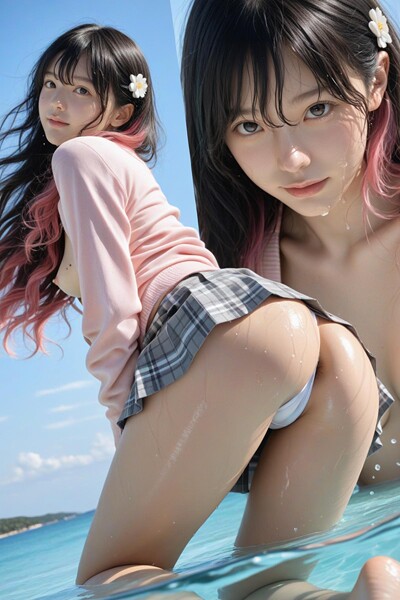 SECRET MEMORY ーコントラストー冬の気配を孕んだ誰もいない海辺、波打ち際を歩く制服姿の彼女。風に舞う黒とピンクのツートンヘアが、灰色の空の下で鮮烈な「コントラスト」を描き、彼女の異質さを際立たせている。ふと立ち止まり、誘うような視線で振り返るその刹那、翻るスカートの影に潜む背徳が白日の下に晒された。清純な学生という記号と、その内側に隠し持った攻撃的なまでの情動。寄せては返す波のように絶…