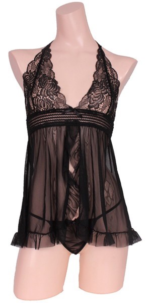 EROX 恋心フェミニンベビードール&Tバックセット ブラック|EROX|lingerie5221【大人のおもちゃ】