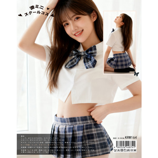 清楚さをキープしつつおへそと脚見せすっきりとした透明感と清楚さを身にまとう純情スクールコスチューム!