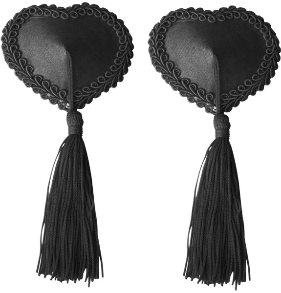 ニップルタッセル フリルサテンハート黒