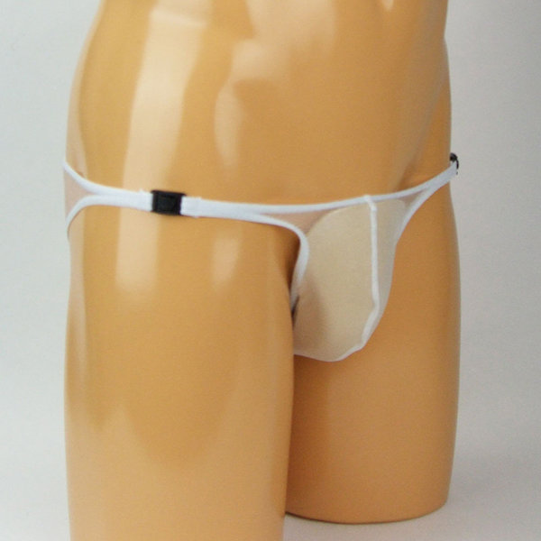 メンズ キラキラシースルーワンタッチバックル付きハーフバック ホワイト