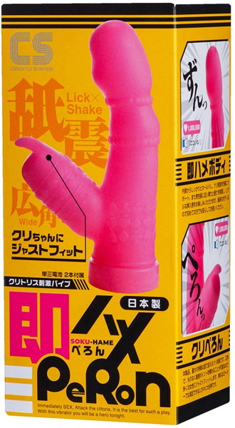 気軽にエロティックなプレイを楽しめる小型バイブローター・即ハメPeRoN(ぺろん)。 まるで熟練の職人の様なクンニプレイをお楽しみいただける一本です。 クンニプレイの快感を引き出す最大の特徴はやはりク○バイブ(通称・ク○ぺろん)。 接地面が広いので労なく敏感ポイントを捉え、多くの方々にジャストフィットします。 また本体部(通称・即ハメボディ)は振動こそしませんが、程よい弾力の気持ちいい挿入感を実…