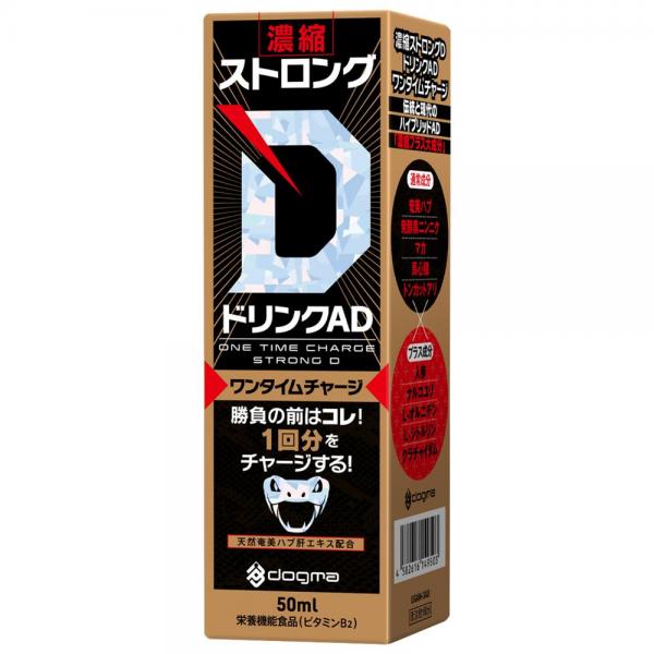 大人気ストロングDシリーズのドリンクタイプ!新感覚の濃厚ドリンクで、熱くなろうぜ!勝負の前はコレ!一回分をチャージする!伝統と現代のハイブリッドAD「濃縮プラス大成分」でグレードアップ!プラス成分として人参、ナルコユリ、L-オルチニン、L-シトルリン、クラチャイダムを配合。進化したストロングDドリンクを是非お試しください。賞味期限が2年から3年に長持ちになりました!検査番号:2405254